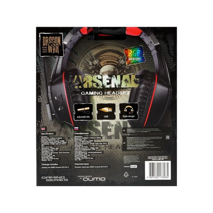 Купить Гарнитура Qumo Arsenal GHS 0016, стереогарнитура, подсветка, USB
