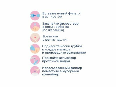 - уменьшает заложенность - улучшается сон и аппетит - фильтр аспиратора позволяет предотвратить заражение - детальная инструкция в упаковке - длинный отсасывающий катетер, делает процедуру очень комфортной |