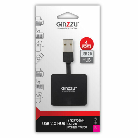 Концентратор USB 2.0 Ginzzu, 4 порта, черный (GR-414UB)