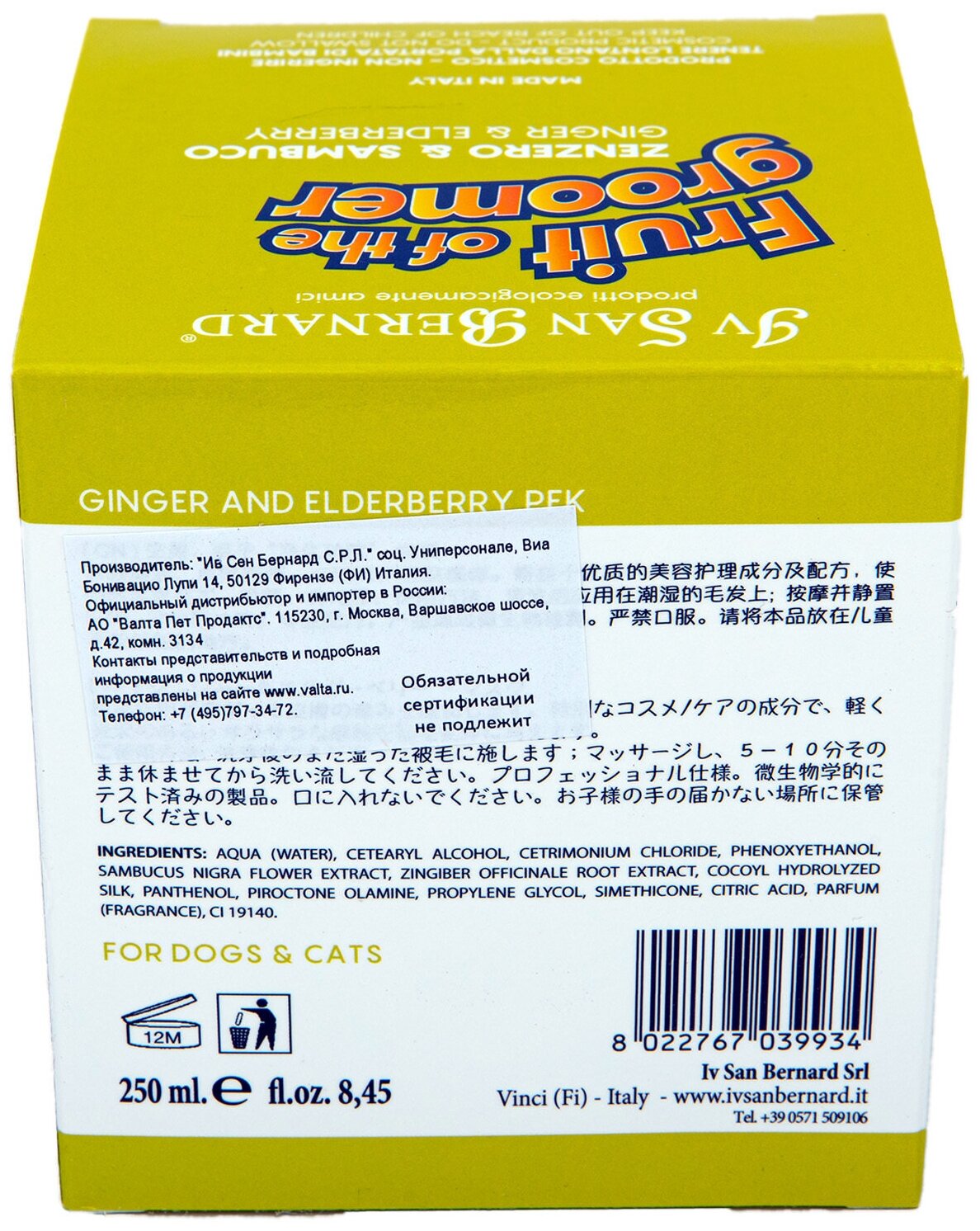 СохранитьIV SAN BERNARD FRUIT OF THE GROOMER GINGER & ELDERBERY MASK маска восстанавливающая Имбирь и бузина с противовоспалительным эффектом для собак и кошек (250 мл) интересное: