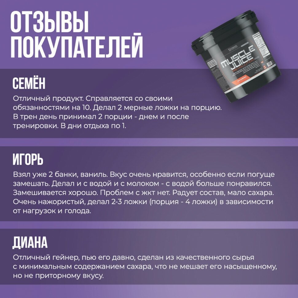 Ниже Вы можете прочитать отзывы на Гейнер Muscle Juice Revolution, Клубника, 5040 г, ознакомится с подробными характеристиками, посмотреть интересные обзоры и фотографии на Гейнер Muscle Juice Revolution, Клубника, 5040 г.