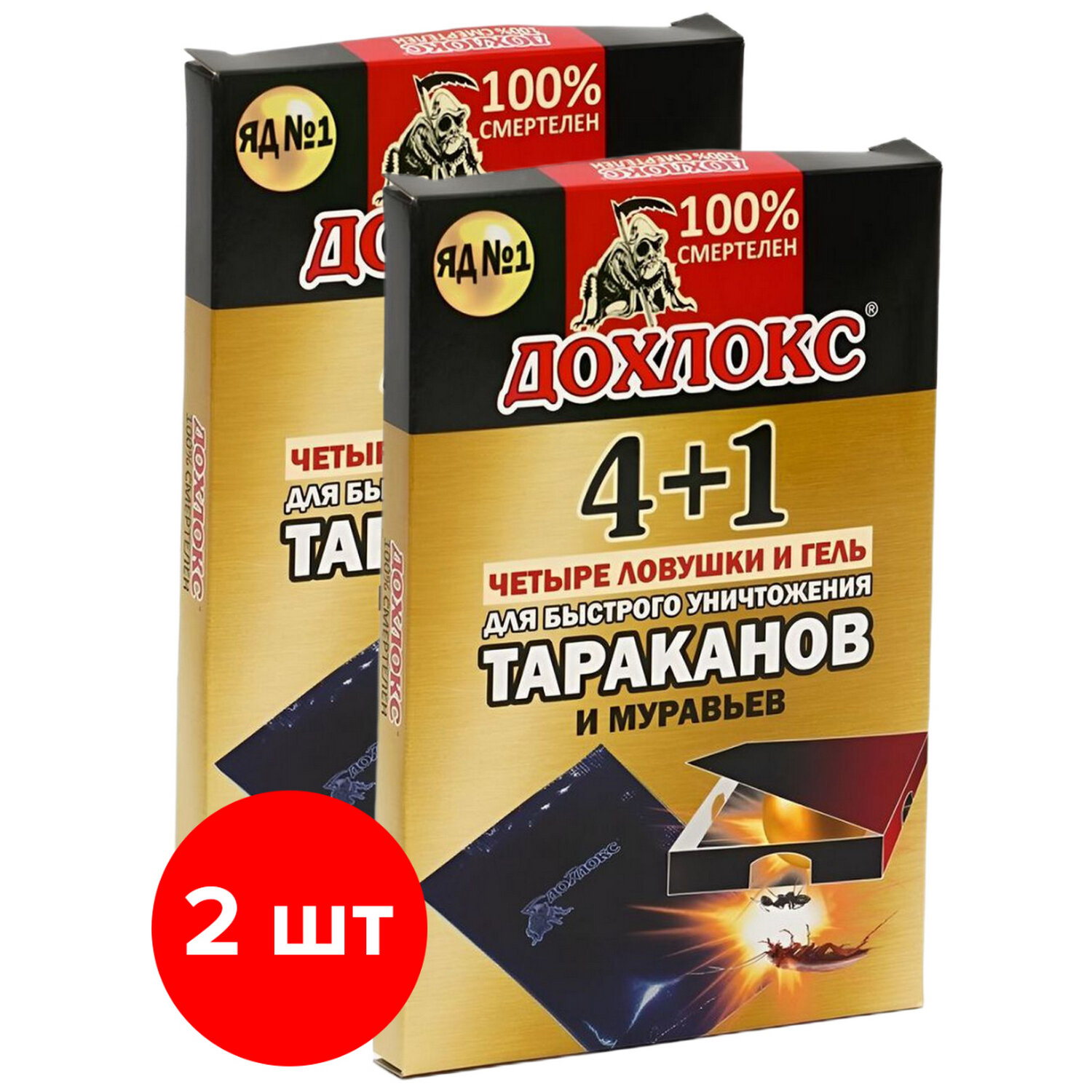 Ловушки от тараканов Дохлокс 4 шт + гель от тараканов, 40 мл./В упаковке шт: 3