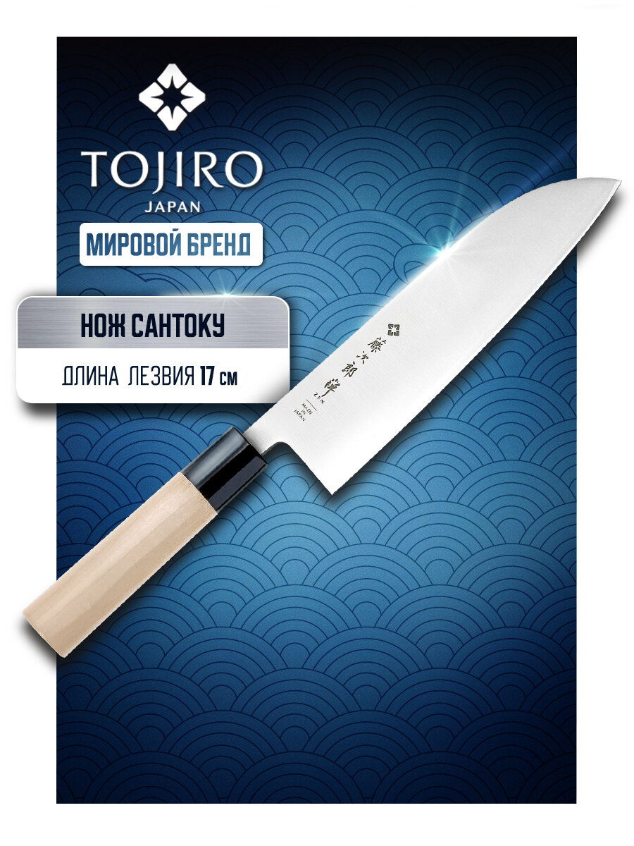 Нож кухонный Сантоку шеф TOJIRO (FD-567), длина лезвия 17,0 см, сталь VG-10, 3 слоя, рукоять дерево, Япония