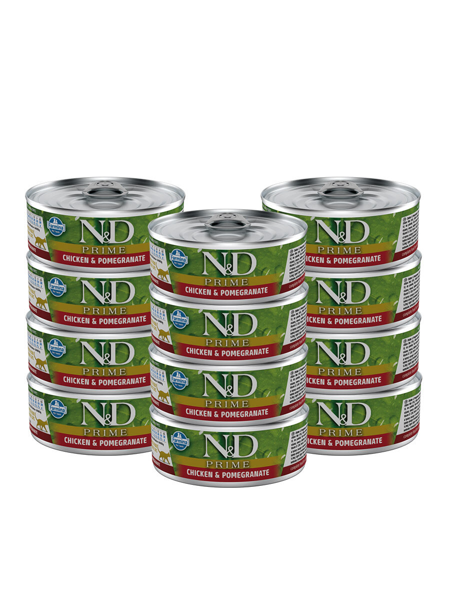 Влажный корм с курицей и гранатом, для кошек, Farmina N&D Prime, Chicken & Pomegranate, упаковка 12 шт х 70 г