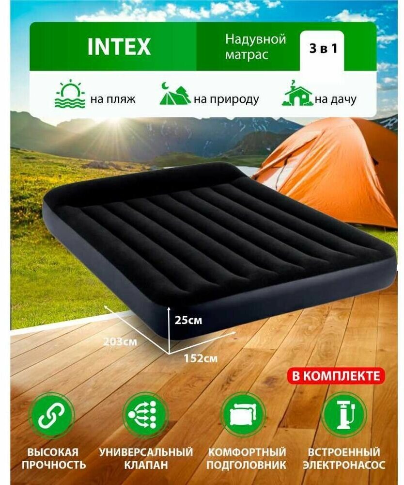 Матрас надувной Intex 64150, 203x152x25, с подголовником, насос встроенный электрический