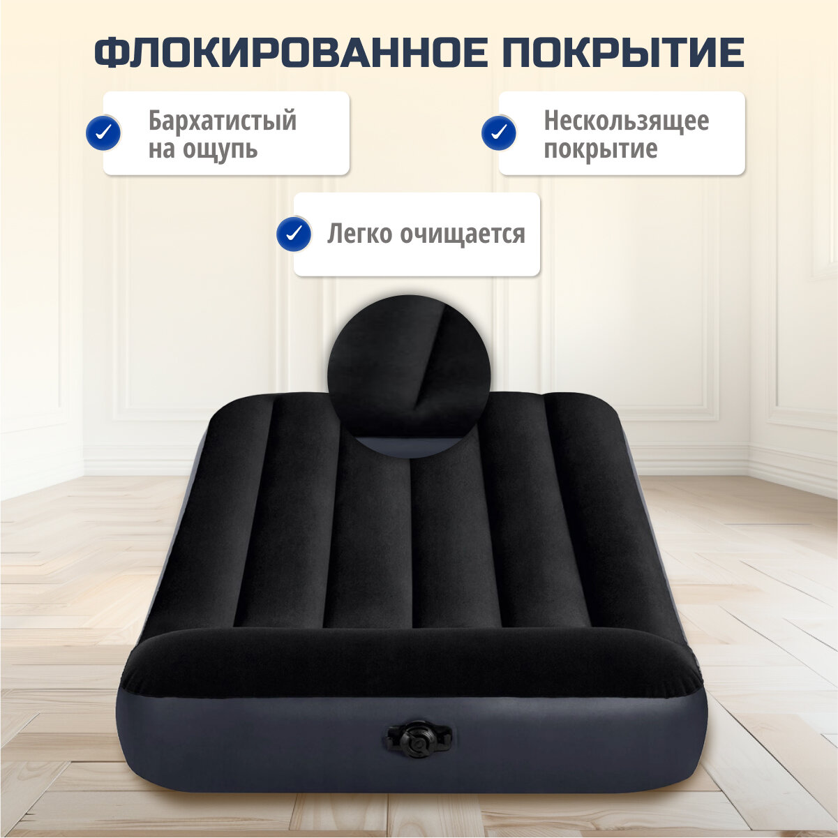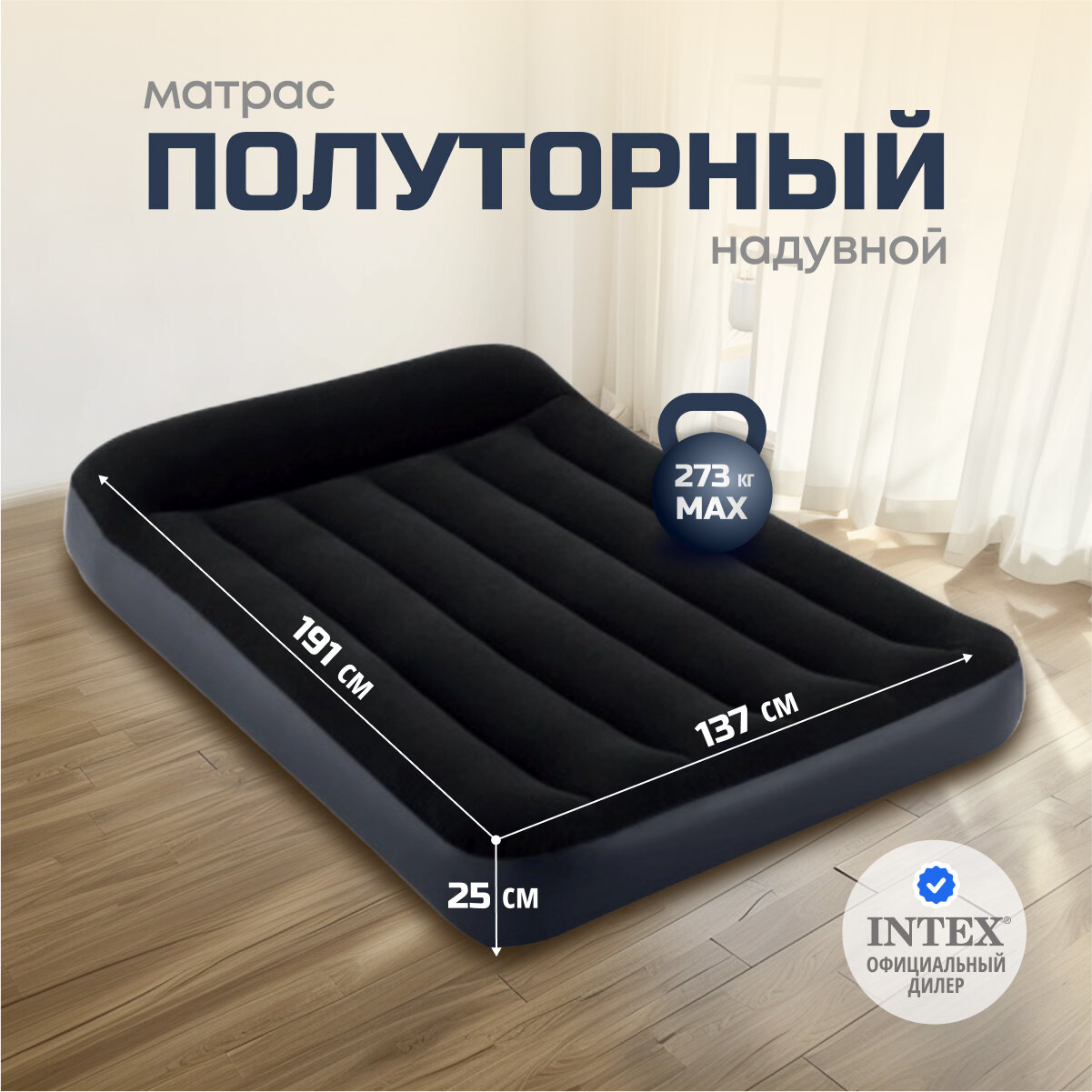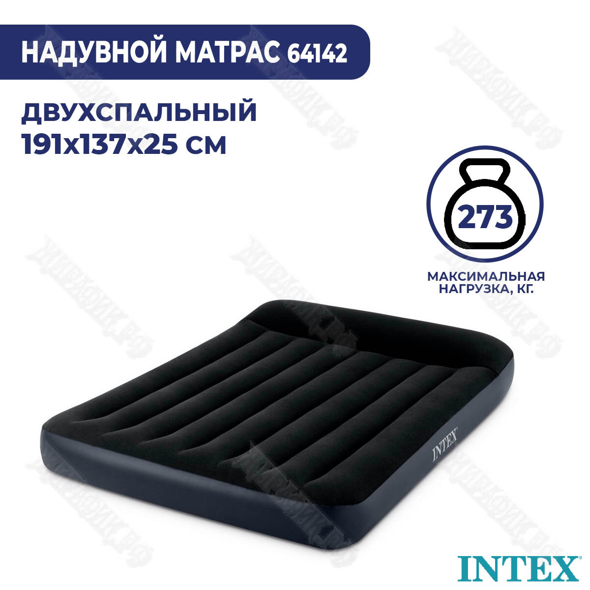 Матрас надувной Intex, 191х137х25 см, 64142, флокированный, 273 кг