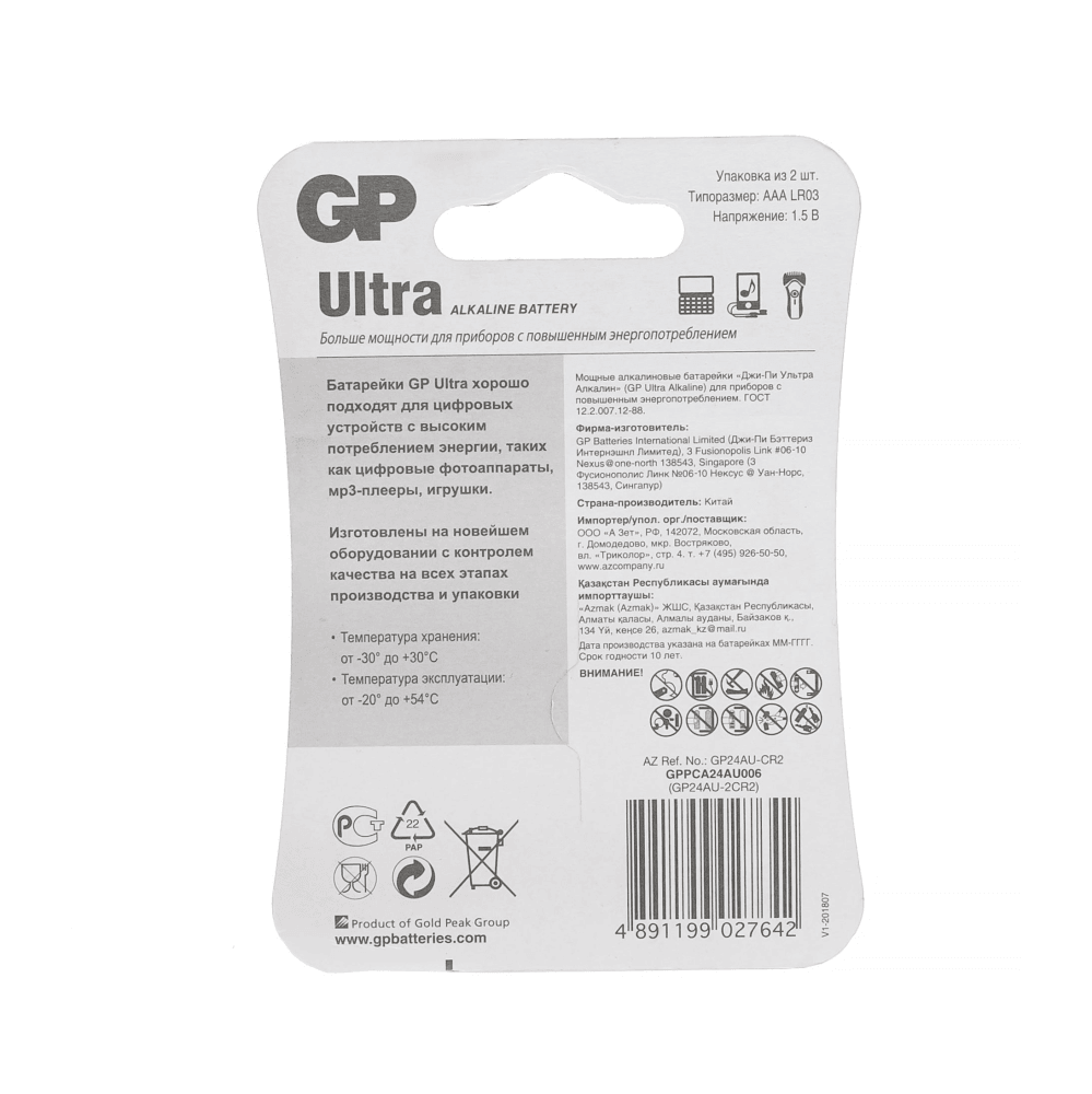 GPBI Батарейка GP Ultra Alkaline 24AU-CR2, типоразмер ААА, 2 шт