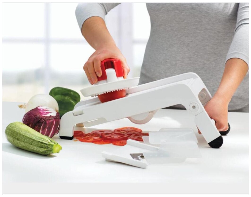 | Плюсы: | Удобно расположены ножи, прорезаться практически невозможно, в отличии от других шинковок. Занимает мало места, удобно хранить |
