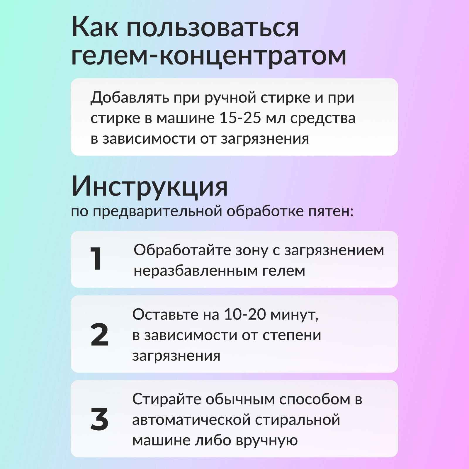 | Плюсы: | Экономичный расход, на стирку нужно 5 нажатий помпы. Производитель обещает, что хватит на 62 стирки. |
