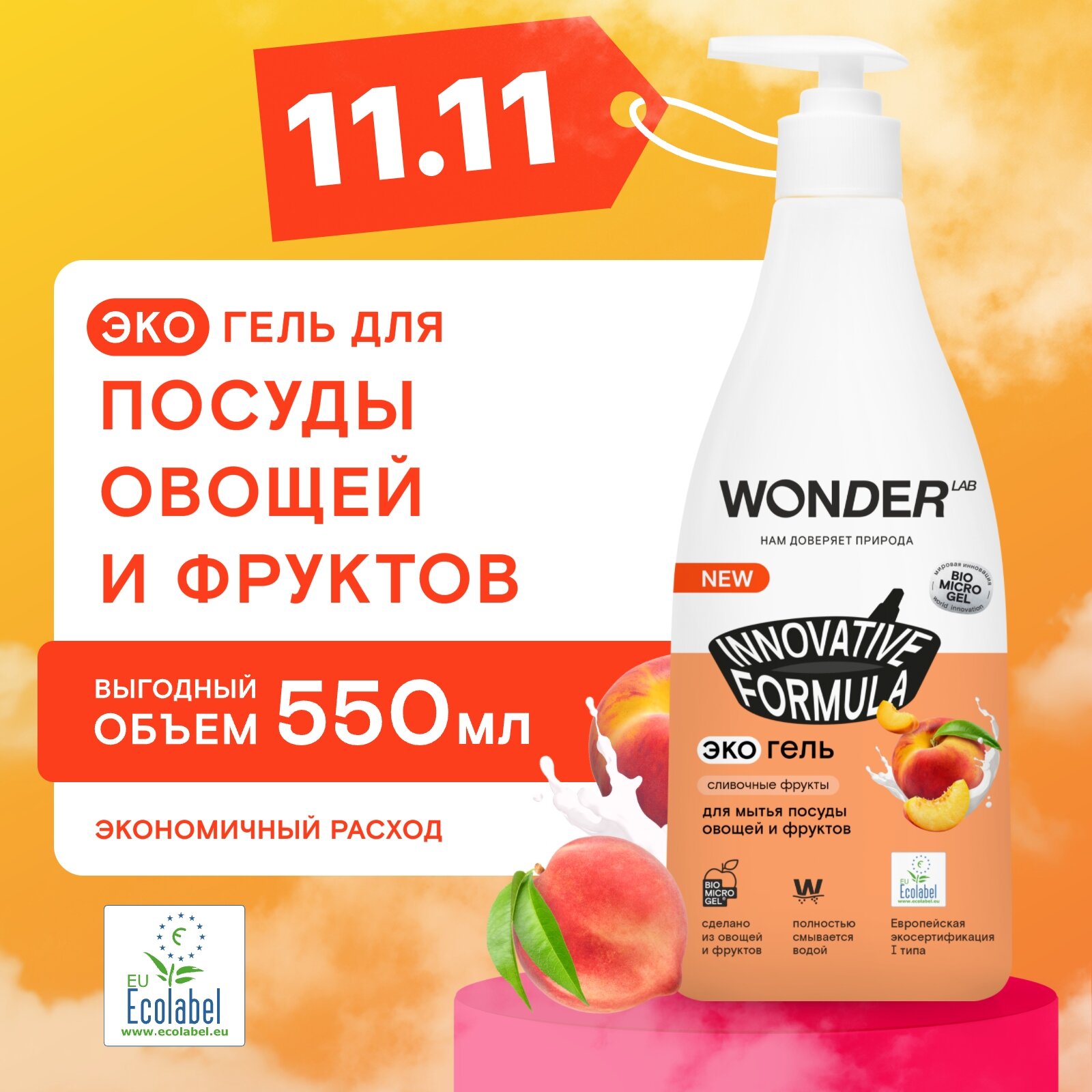 Купить Средство для мытья посуды, овощей и фруктов WONDER LAB ЭКО ароматом сливочных фруктов 550 мл