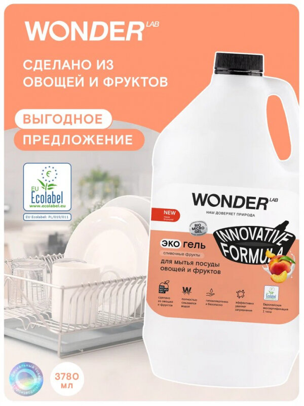 WONDER LAB ЭКО гель для мытья посуды, овощей и фруктов 3780мл