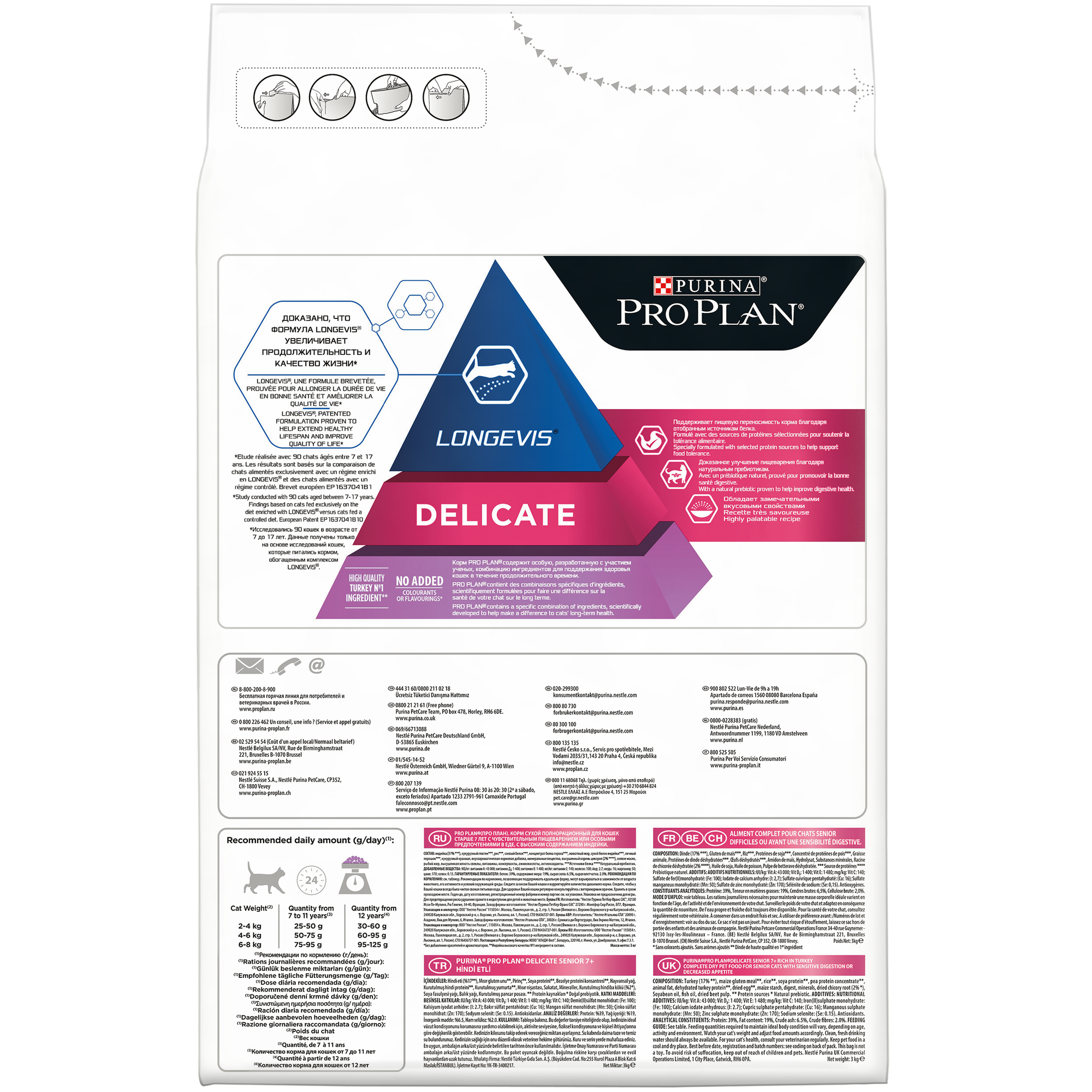 Pro Plan Delicate Senior корм для кошек старше 7 лет с чувствительным пищеварением Индейка, 3 кг.