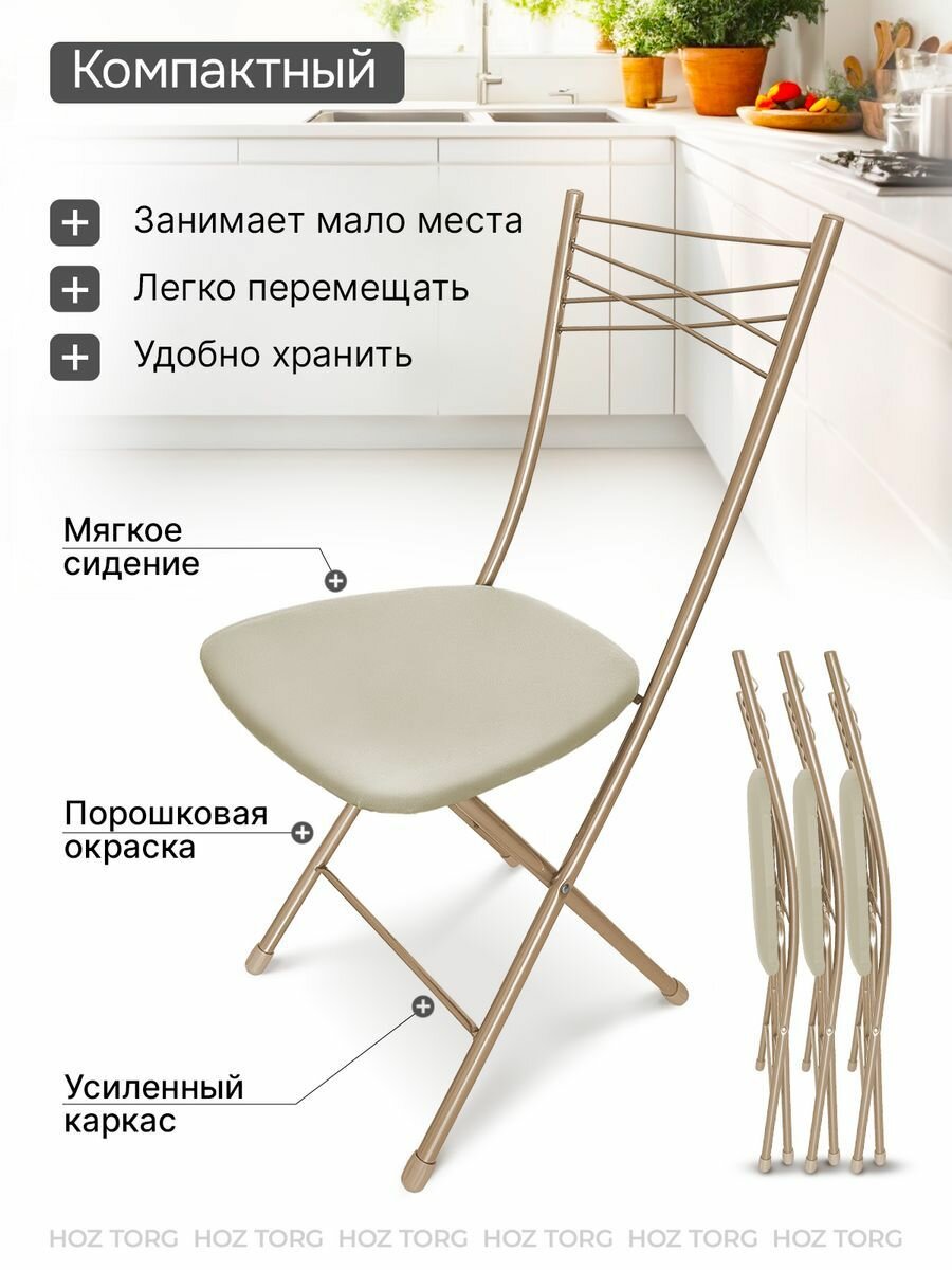 Стул складной Nika Ника 1, сиденье 39,5 x 40 см, слоновая кость/бежевый металлик