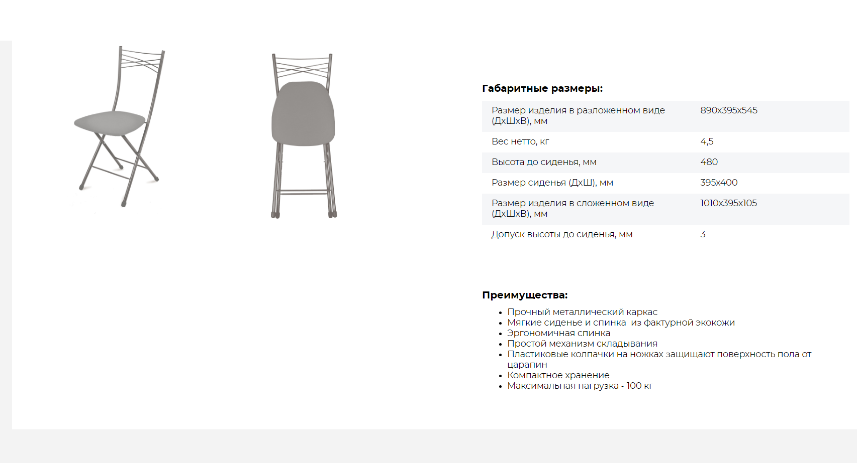 | Плюсы: | Отличные складные стулья для кухни. красиво, стильно и компактно. |
