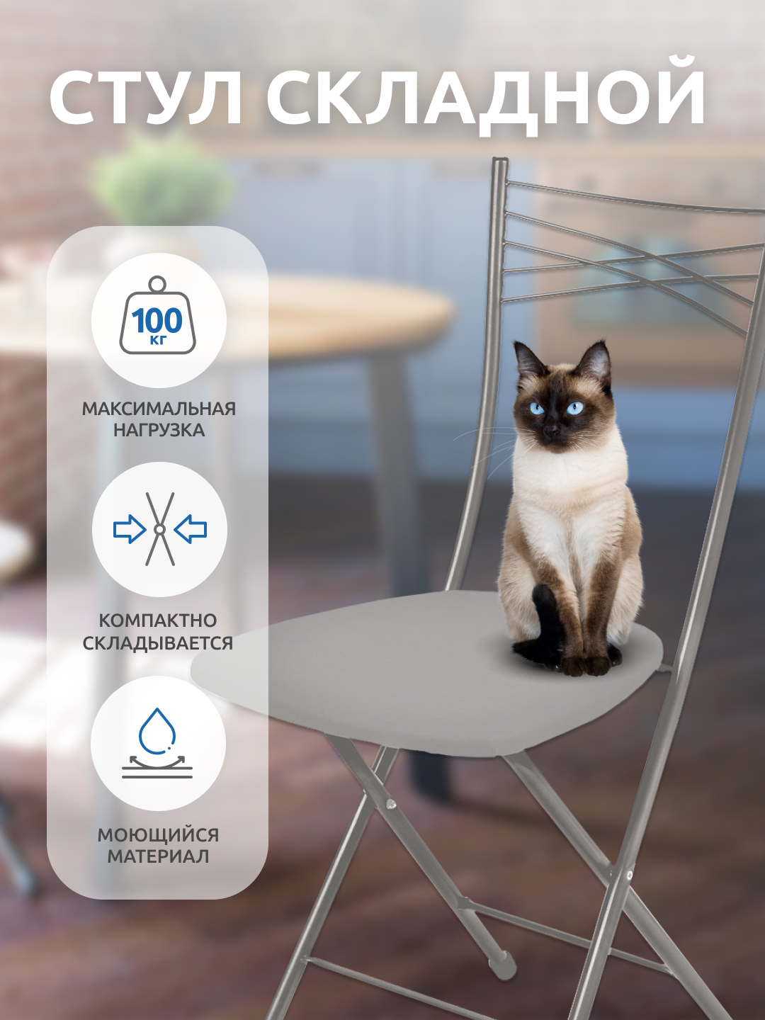 Стул складной "Ника1" с мягким сиденьем, до 100 кг, цвет серый/бежевый