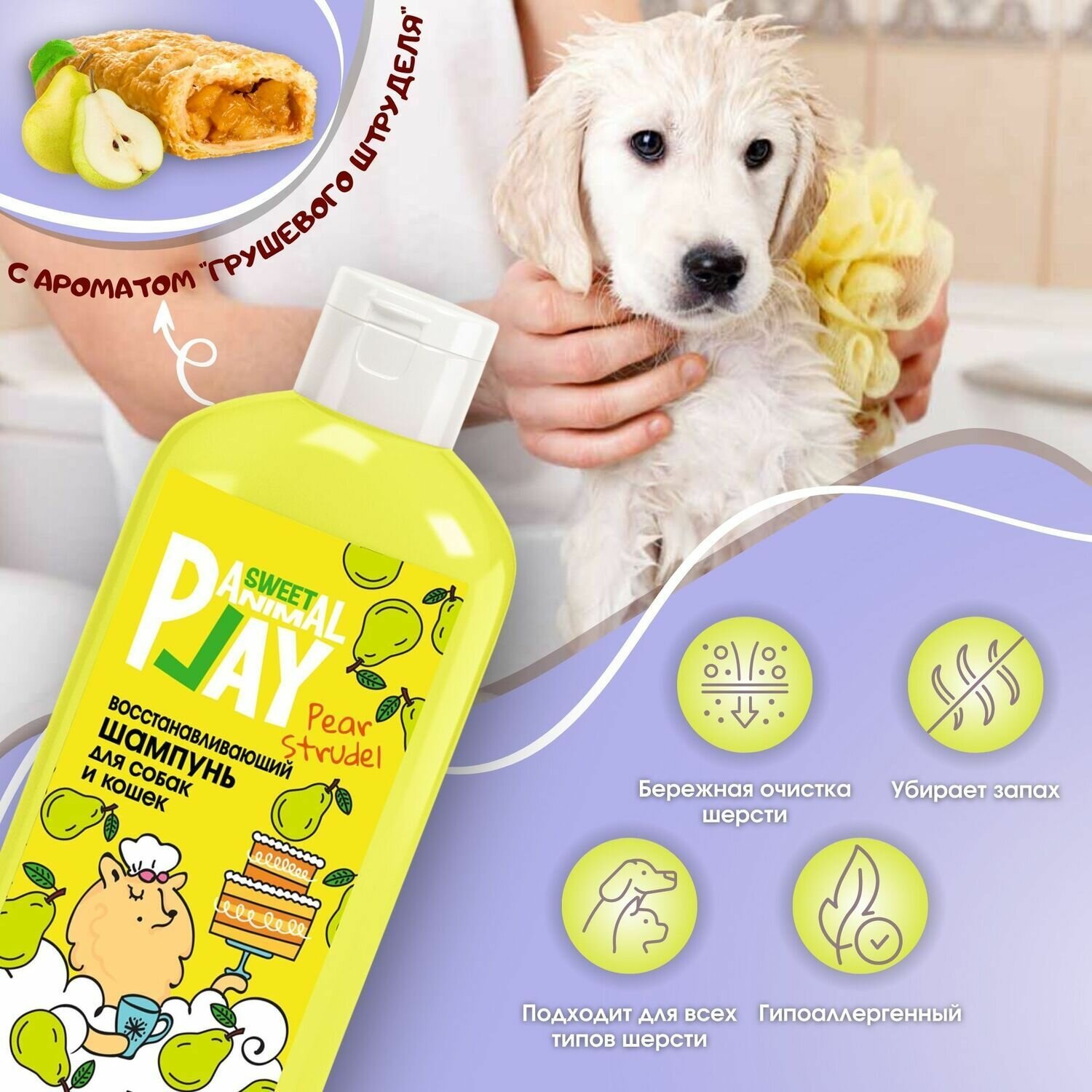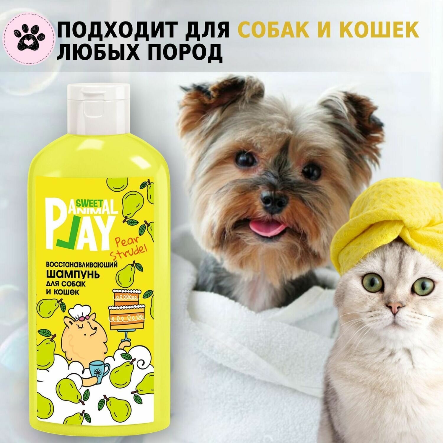 Шампунь ANIMAL PLAY восстанавливающий Грушевый штрудель Sweet, для собак и кошек, 300мл