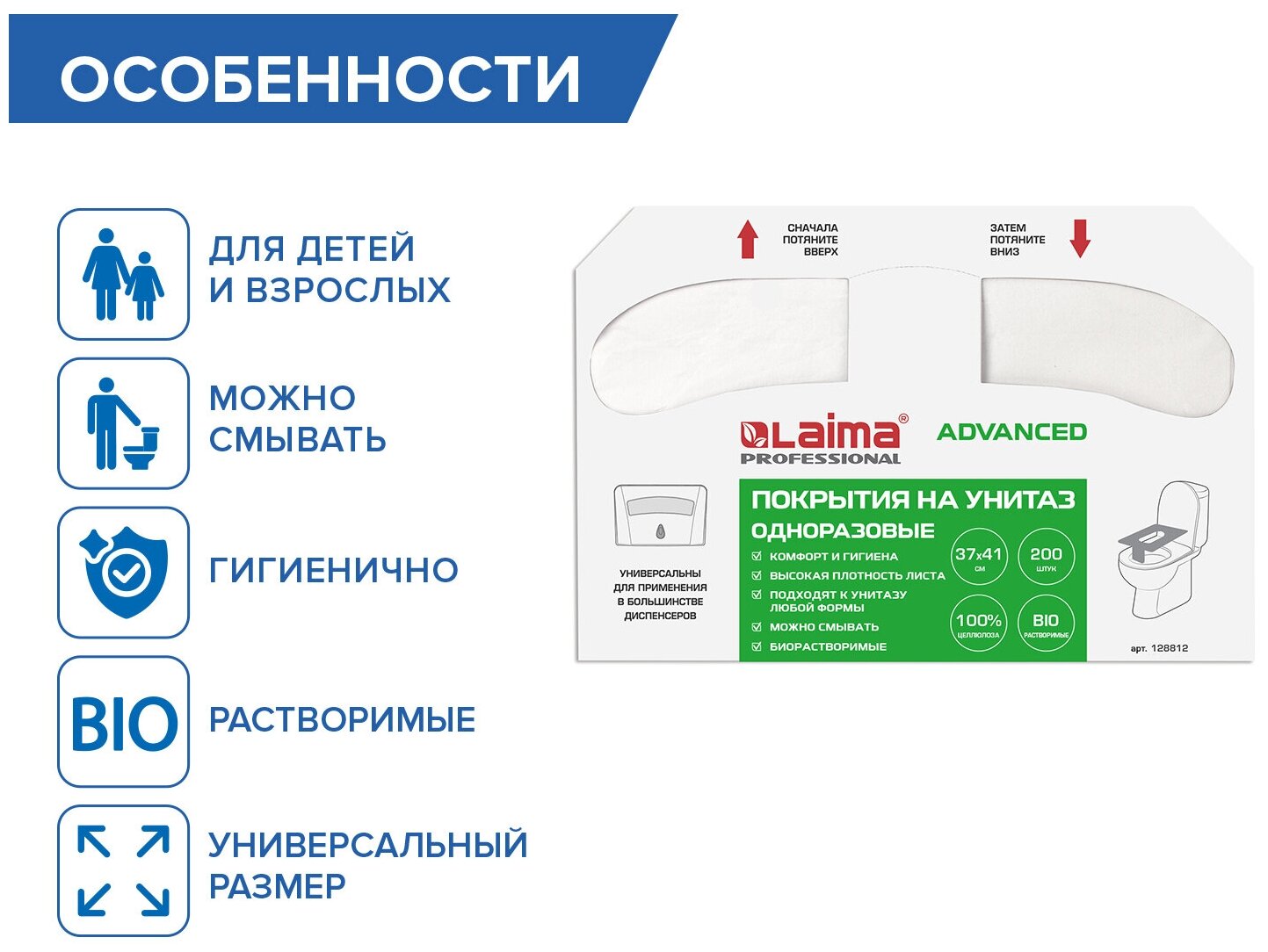 Покрытия на унитаз LAIMA (Система V1), ADVANCED, 1/2 сложения, комплект 200 шт., 37х41 см, 128812 В наборе: 1компл.