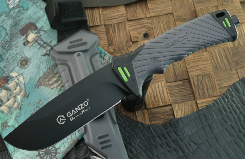 Нож выживания с огнивом Ganzo G8012, чёрный