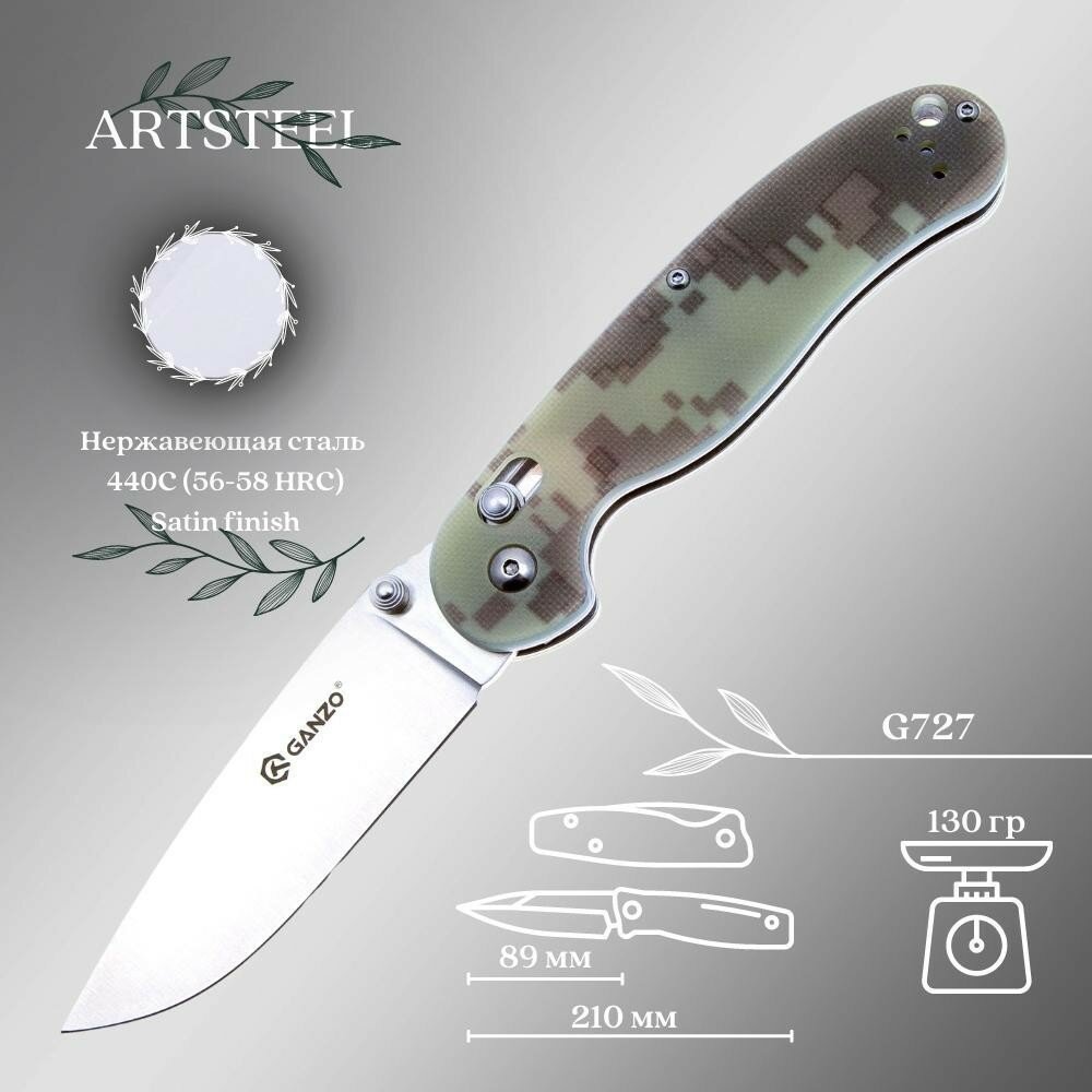 Нож складной "Ganzo", длина клинка 89 мм, сталь 440С, камуфляж