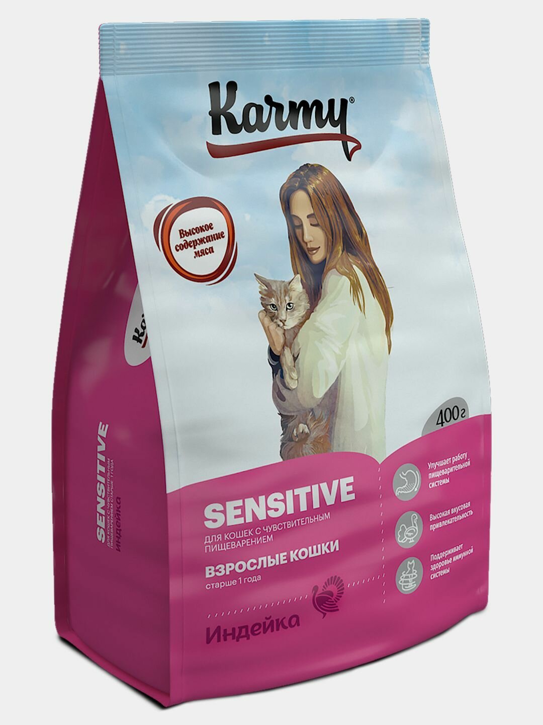 Karmy Sensitive Индейка корм для кошек с чувствительным пищеварением от 1 года, 0,4 кг