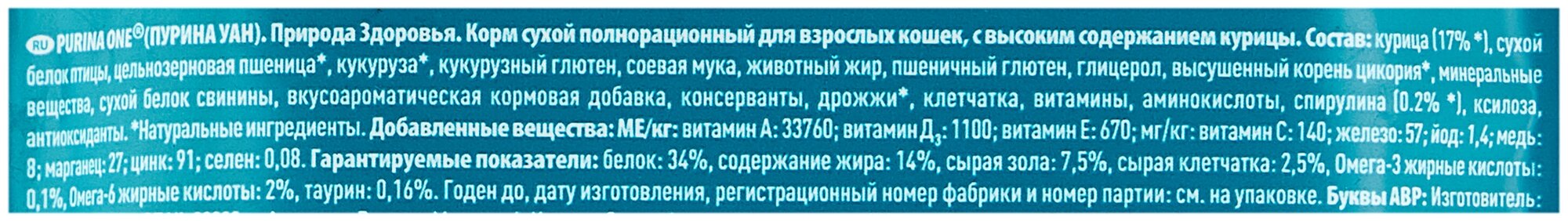 Purina One Сухой корм для взрослых кошек с курицей Природа здоровья 1238455112475308 0,18 кг 37504 (2 шт)