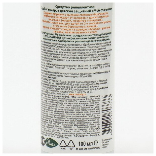 Спрей Моё солнышко от комаров 100 мл - Авантатрейдинг - МОЕ солнышко