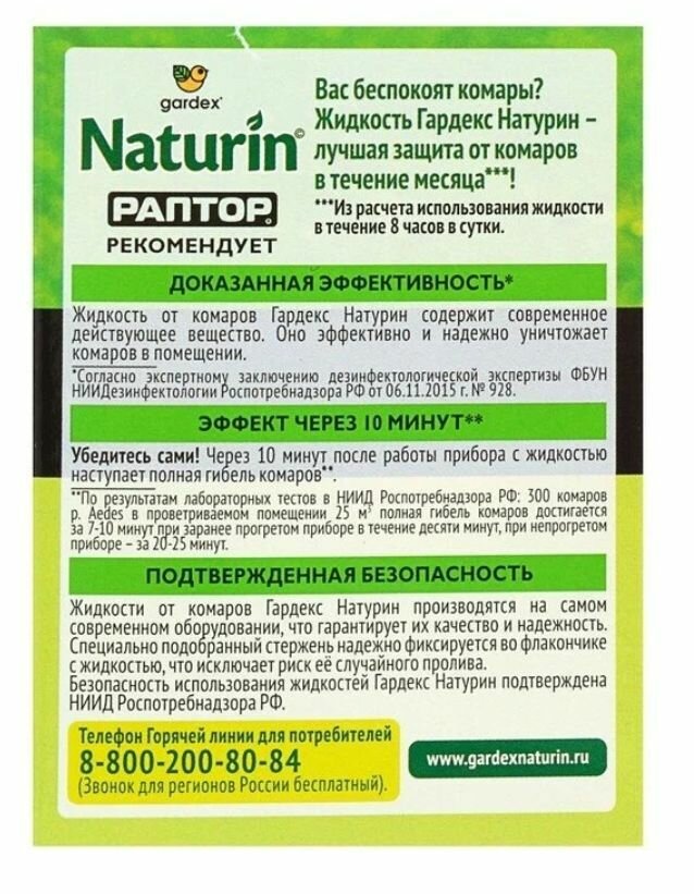 Раптор Naturin Жидкость от комаров без запаха 30ночей