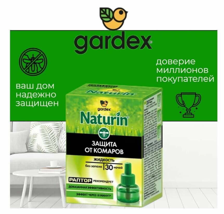 Гардекс / Gardex Naturin - Жидкость защита от комаров без запаха 30 ночей 20 мл