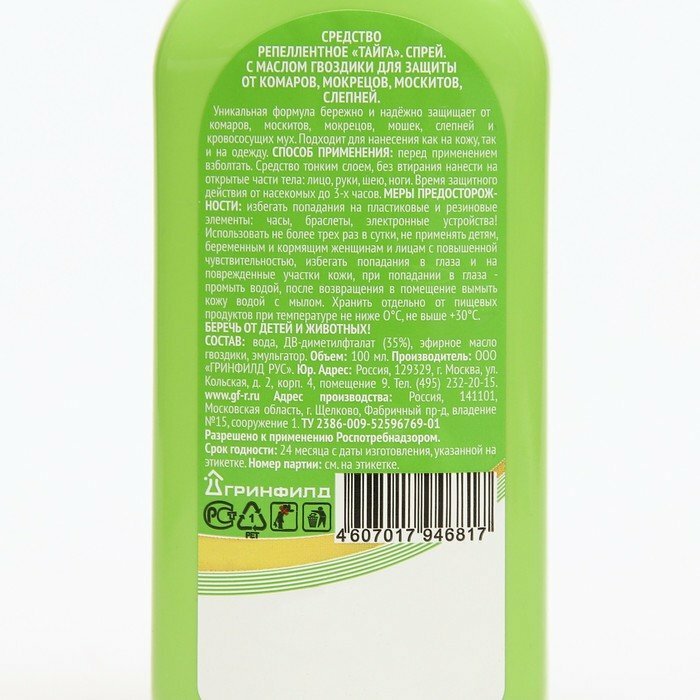 Спрей репеллентный от комаров "Тайга", флакон, 100 мл