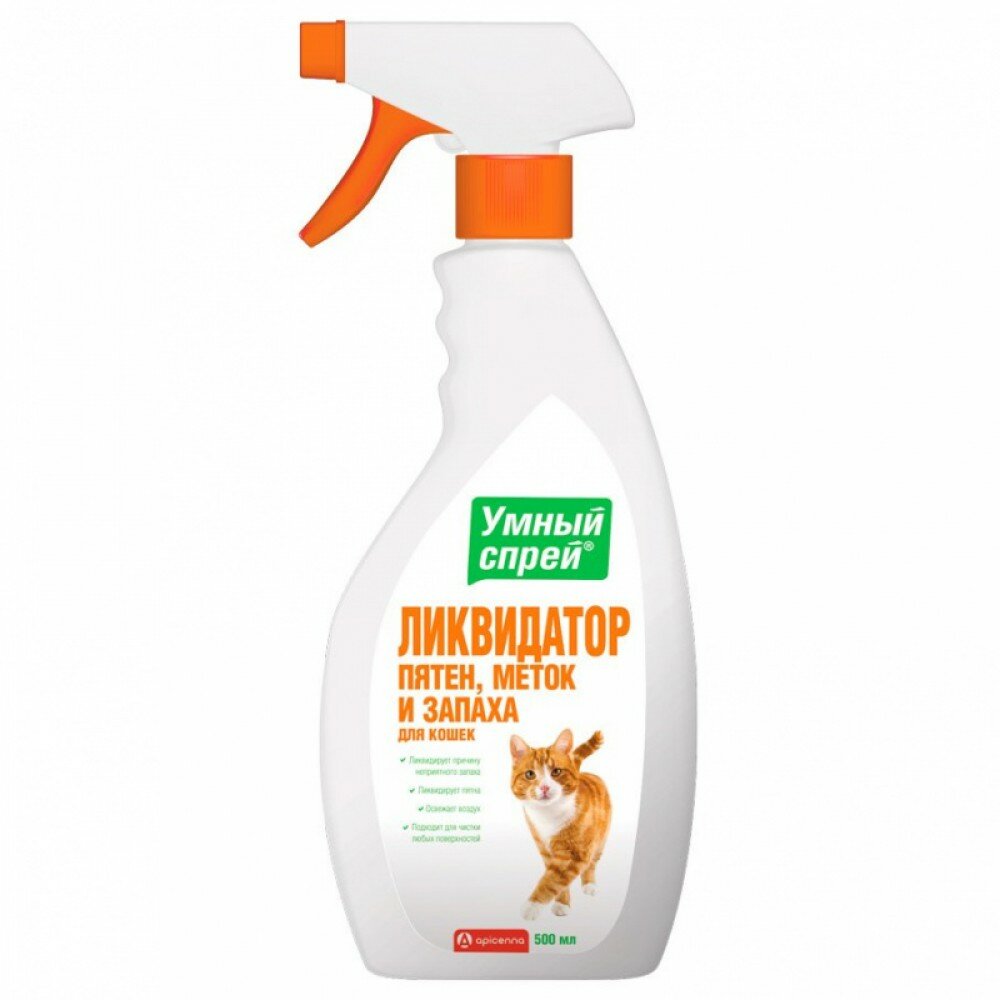 Спрей для содержания питомцев Apicenna Умный спрей Ликвидатор пятен, меток и запаха для кошек, 500 мл