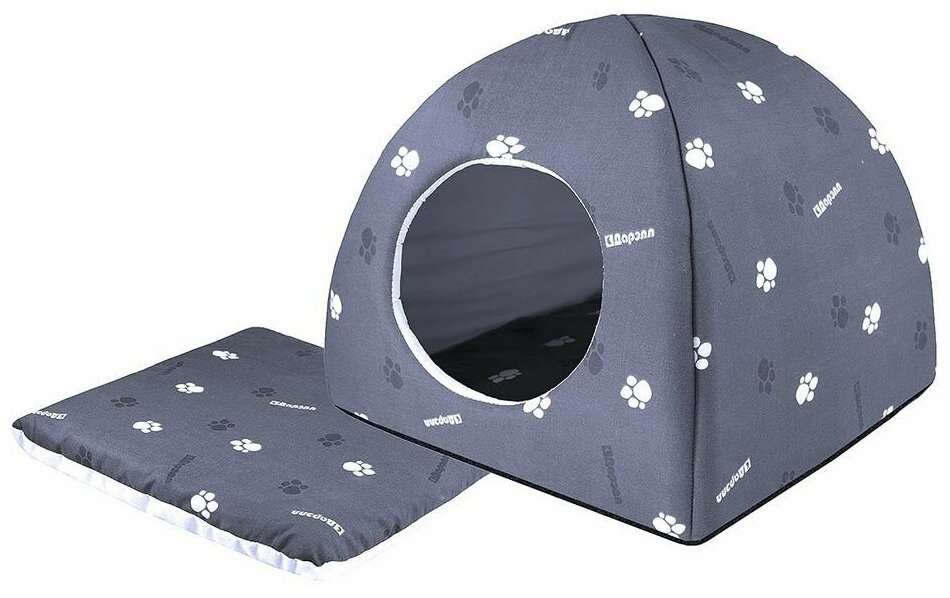 Домик для собак и кошек Дарэлл Юрта с подушкой серый хлопок 33 х 33 х 31 см (1 шт)