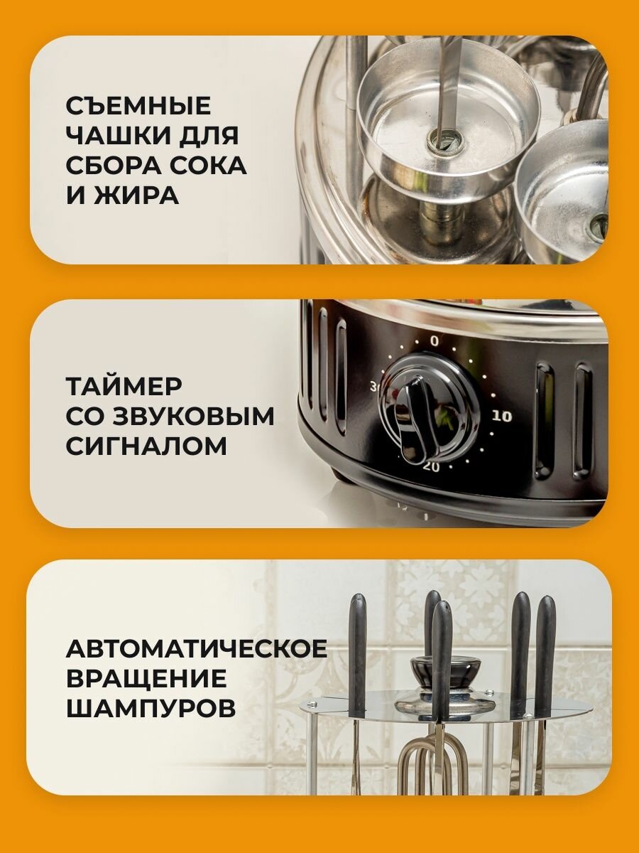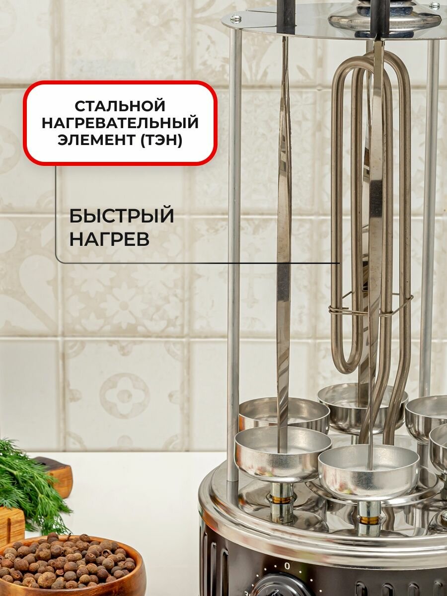 | Плюсы: | Вращаются шампуры, есть таймер и отключение нагревателя |