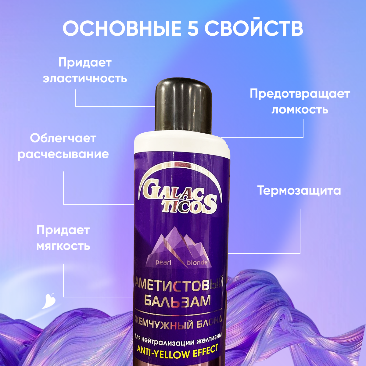 Galacticos Бальзам для нейтрализации желтизны волос / Аметистовый жемчужный блонд, 1000 мл интересное: