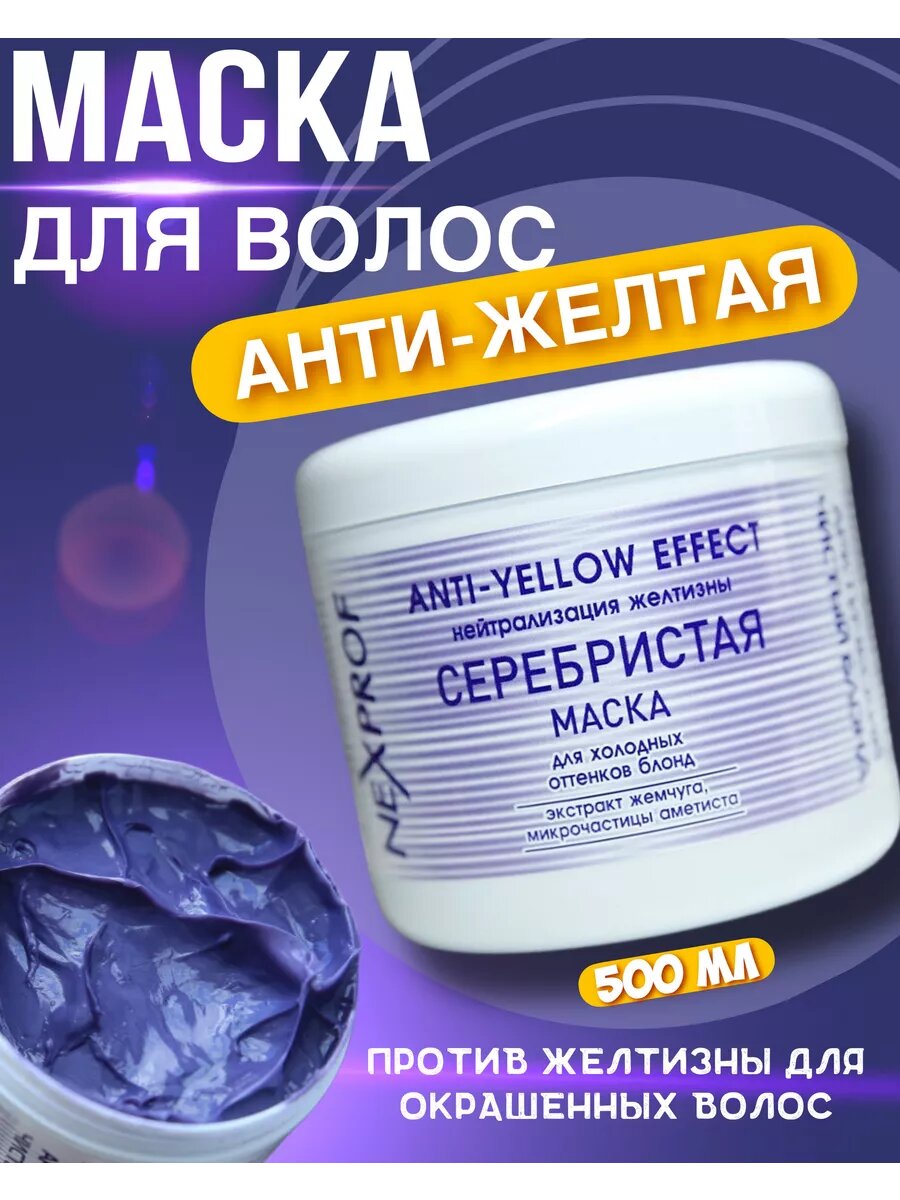 Nexprof Маска для волос нейтрализация желтизны / Серебристая маска Чистый арктичекий блонд Anti-Yellow Effect, 500 мл