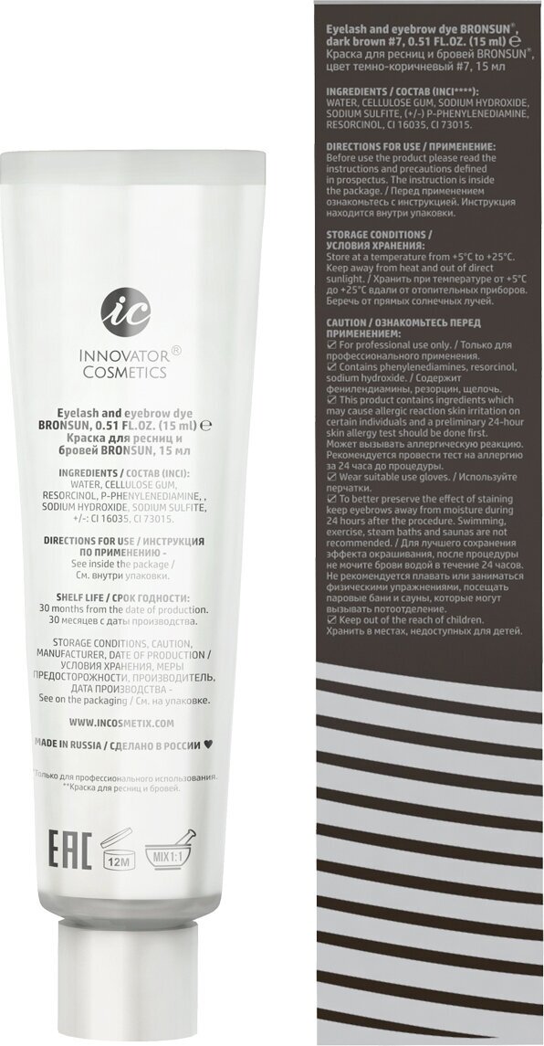 Краска для бровей и ресниц, коричневый цвет #6, Innovator Cosmetics BRONSUN brown, 15 мл (Бронсан)