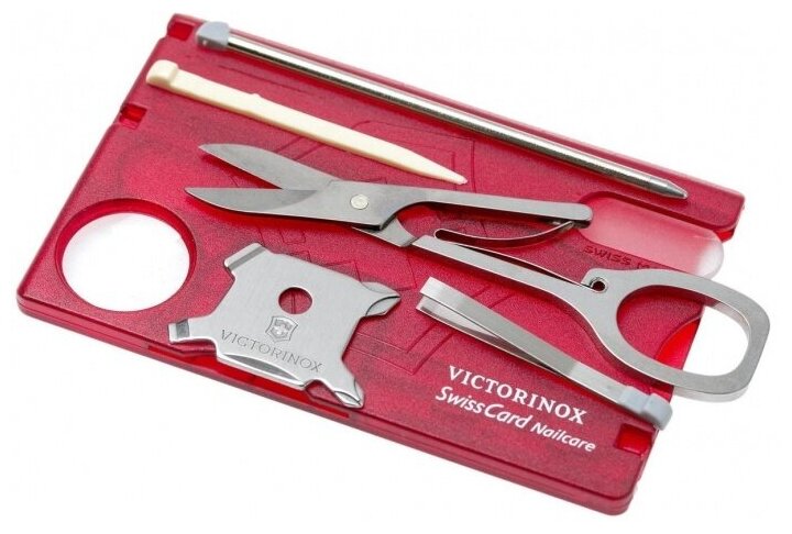 Швейцарская карточка Victorinox SwissCard Nailcare 0.7240.T, 13 функций, корпус из полупрозрачного красного пластика
