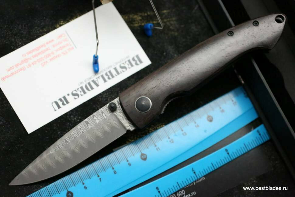 - криво вырезана заготовка лезвия - на спинке ближе к кончику есть маленькая ложбинка, которой быть не должно - немного завалена заточка режущей кромки - через пару месяцев замок притёрся и стал заходить за кромку, из-за чего замок немного заедает при закрытии ножа - пожалуй, это единственное, что реально мешает - на всех сайтах, в т.ч. официальном сайте производителя, указан вес 59 г; реальный вес около 80 г; меня такой вес вполне устраивает, а вот обман производителя - нет - на официальном сайте фотографии с двумя видами дамаска: один кованый с хаотичным рисунком, другой фабричный с повторяющимся волнистым рисунком; по факту сейчас везде продаётся только второй, но производитель не потрудился как-то прояснить этот момент на своём сайте - то же самое с формой клинка - она немного изменилась, но на официальном сайте остались старые фотографии |