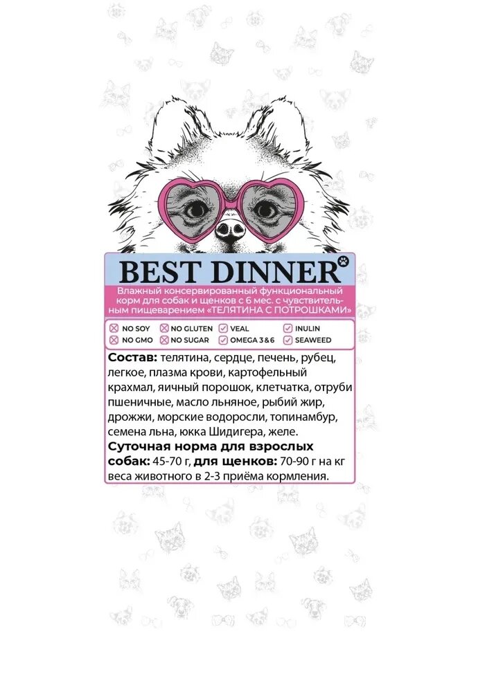 BEST DINNER EXCLUSIVE GASTRO INTESTINAL для собак и щенков с чувствительным пищеварением с телятиной и потрошками (100 гр х 24 шт)