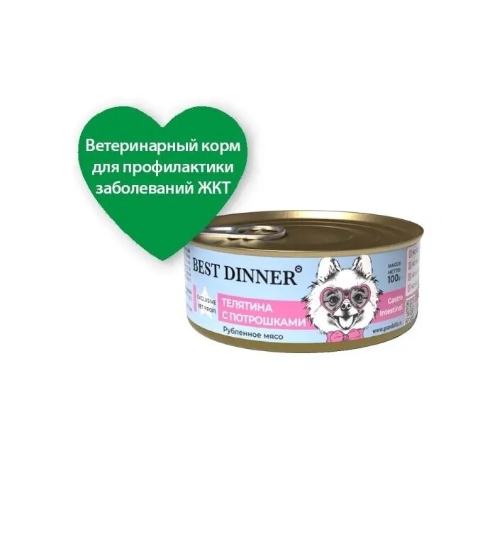 Best Dinner Exclusive Vet Profi Gastro Intestinal для собак Телятина с потрошками 100г