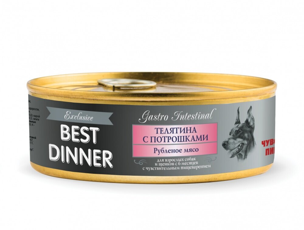 Бест Диннер Best Dinner консервы для собак Exclusive Gastro Intestinal, телятина с потрошками, 340 гр. по 6 шт.