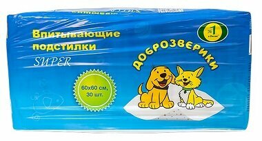 Подстилки впитывающие для домашних животных, Доброзверики, супер, 60 х 60 см, 30 шт