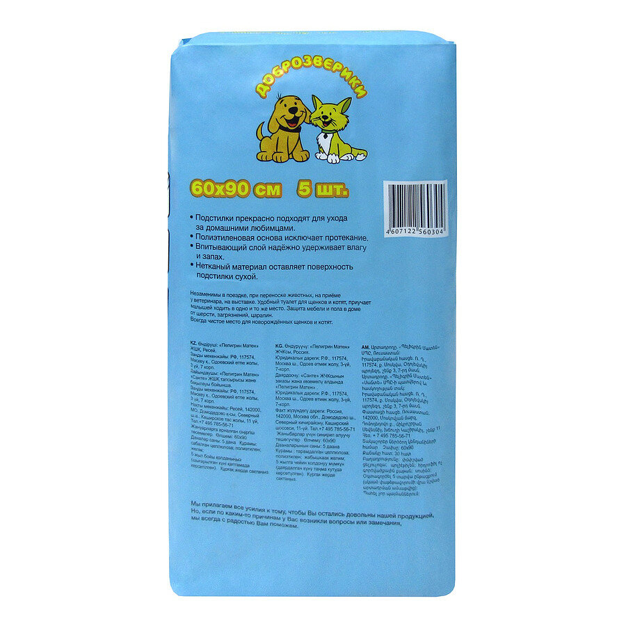 Доброзверики подстилки для животных "Экономичная упаковка", 60х90 см, 5 шт