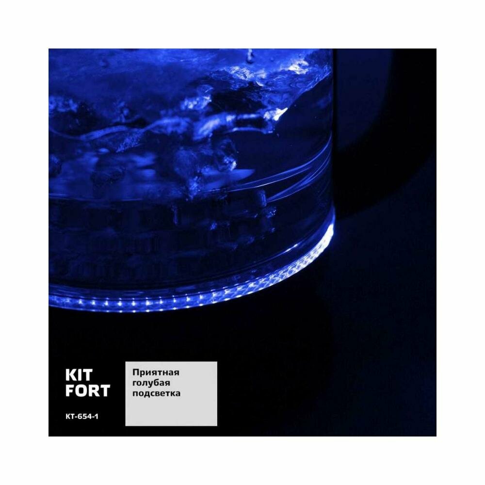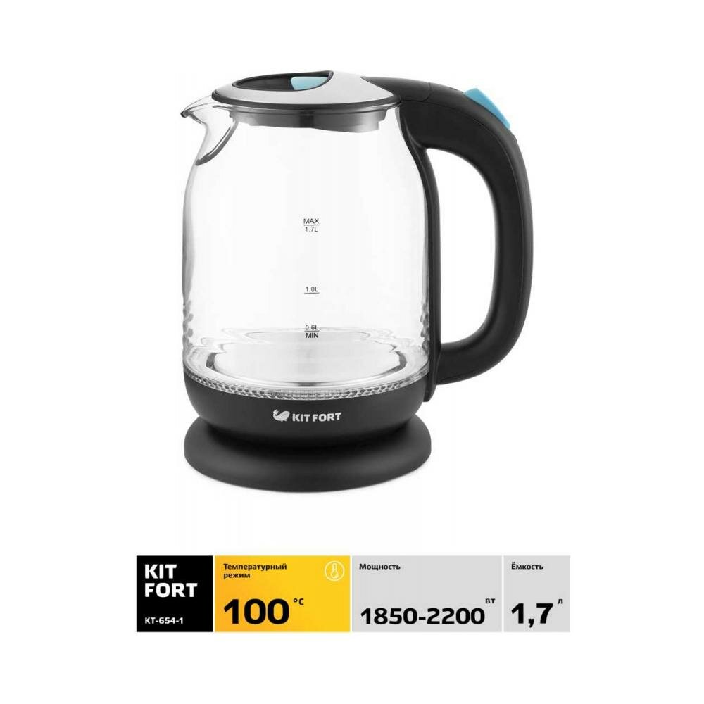 Чайник электрический Kitfort КТ-654-1 1.7л. 2200Вт голубой (корпус: стекло)