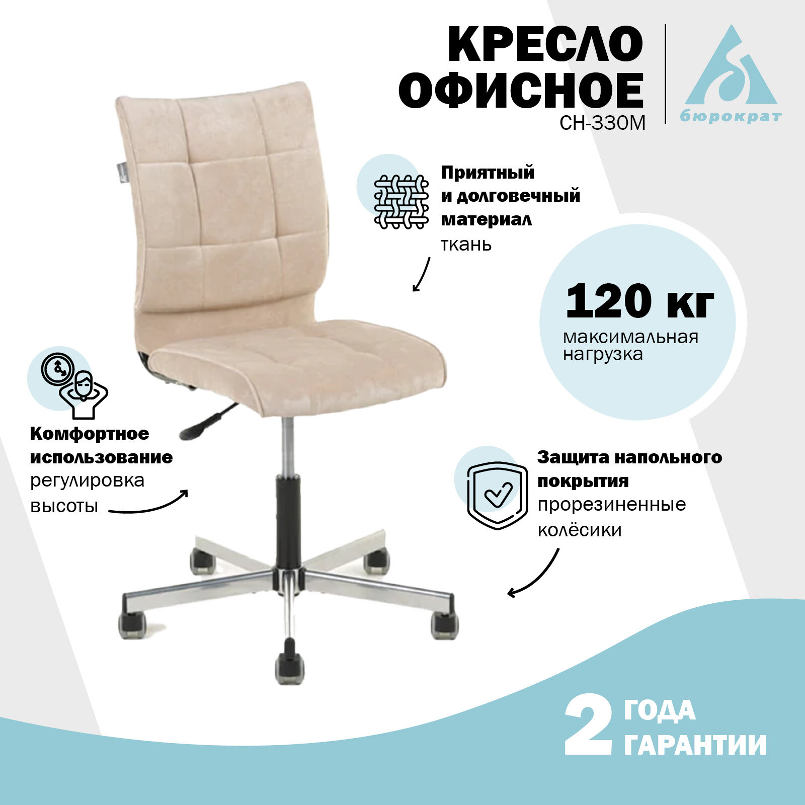 Офисное кресло без подлокотников Бюрократ CH-330M Light-21 из ткани песочного цвета, стул компьютерный