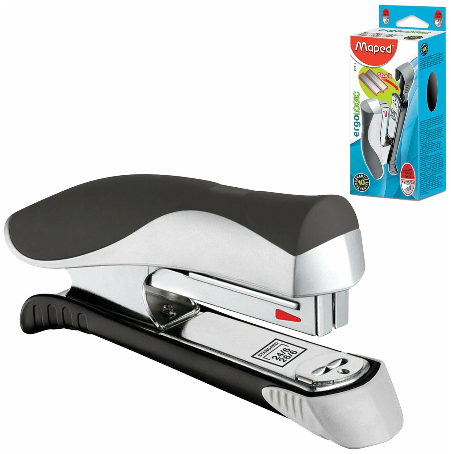 Maped Степлер MAPED ERGOLOGIC 352513 (N24/6, N26/6) до 25 листов, (серебро)