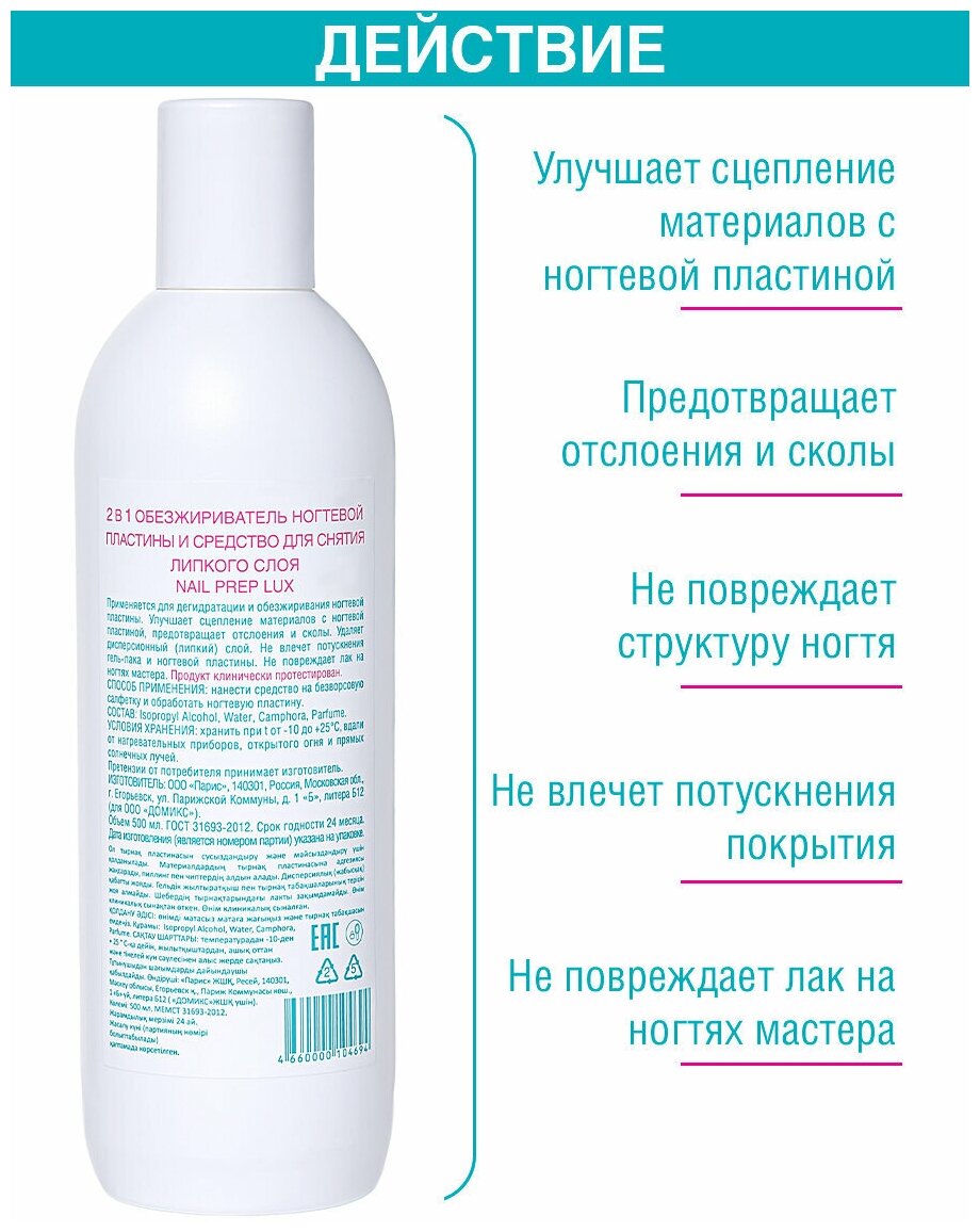 Обезжириватель 2 в 1 LUX ногтевой пластины и ср.для снятия липкого слоя Nail Prep 500 мл