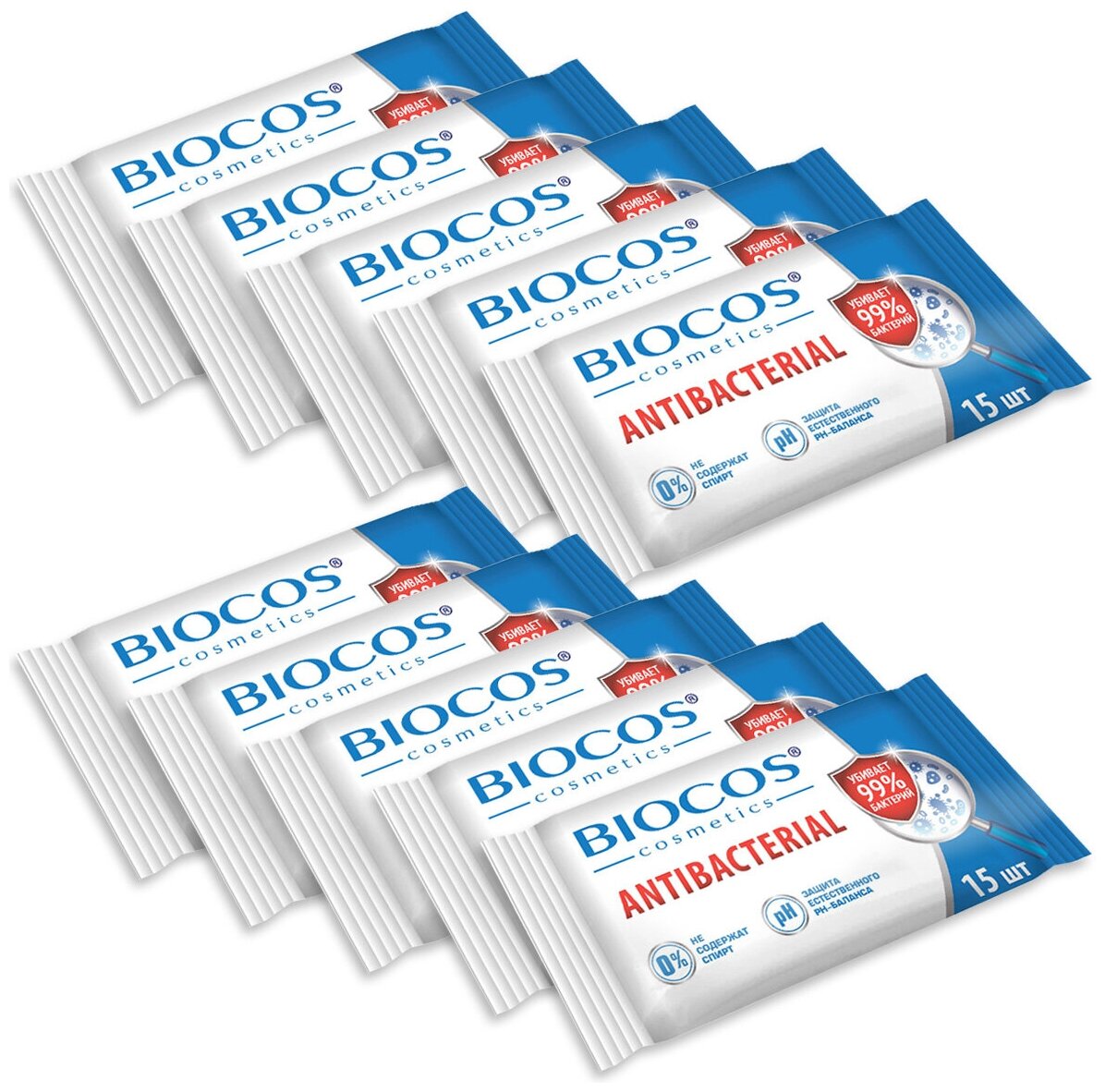 Купить Влажные салфетки BioCos Антибактериальные 15 шт./упак. х 10 упак.