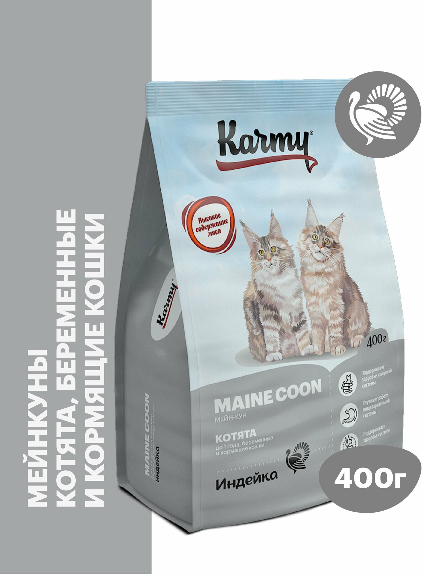 Сухой корм для котят, беременных и кормящих кошек Karmy Maine Coon, индейка 400 г