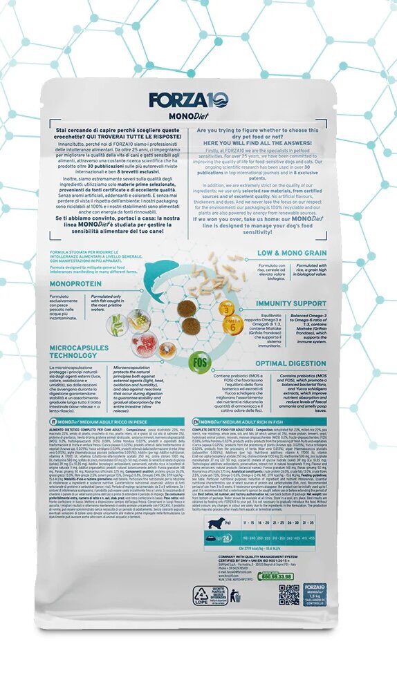 FORZA10 DOG MEDIUM MONODIET монобелковый для взрослых собак средних пород при аллергии с рыбой (1,5 кг)