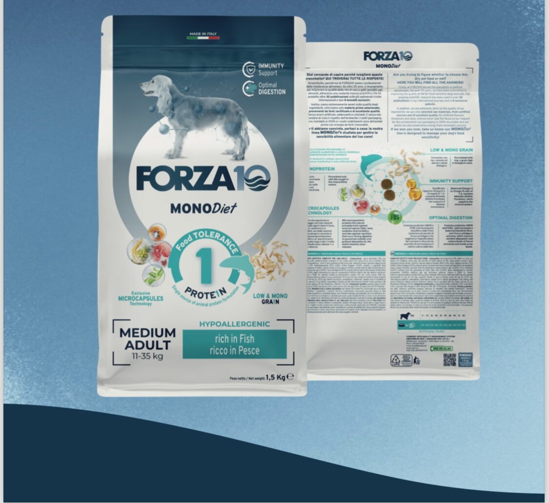 FORZA10 DOG MEDIUM MONODIET монобелковый для взрослых собак средних пород при аллергии с рыбой (1,5 + 1,5 кг)